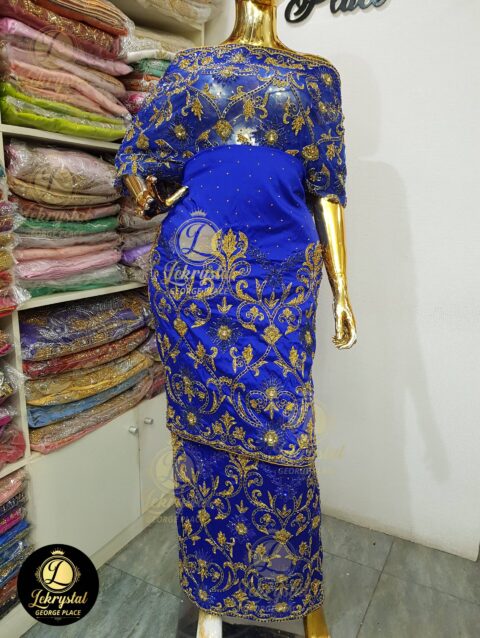 Be the first to review “Navy Blue Net on Silk with Crystal Silver Stones Luxury George”